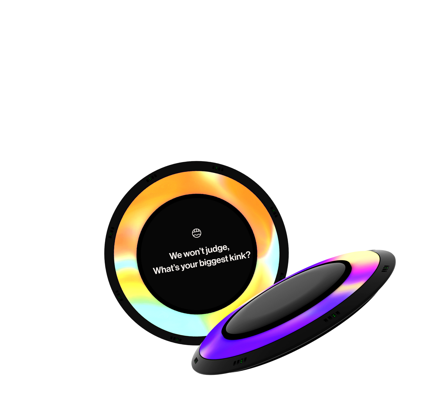 Use Your Mouth combines a mobile app and a physical disk. The disk is the game board that displays conversation-starting prompts, It offers audio-visual and tactile functions that sense haptic input from players regarding heart rate, body temperature, and pressure, creating a visual halo of the players' emotions directly on the disk. Use Your Mouth picks up on tone and keywords in the player's conversation during the game to develop generative AI-based art unique to these conversations. The disk’s audio-visual function also offers fact-checking when misconceptions are brought into conversation